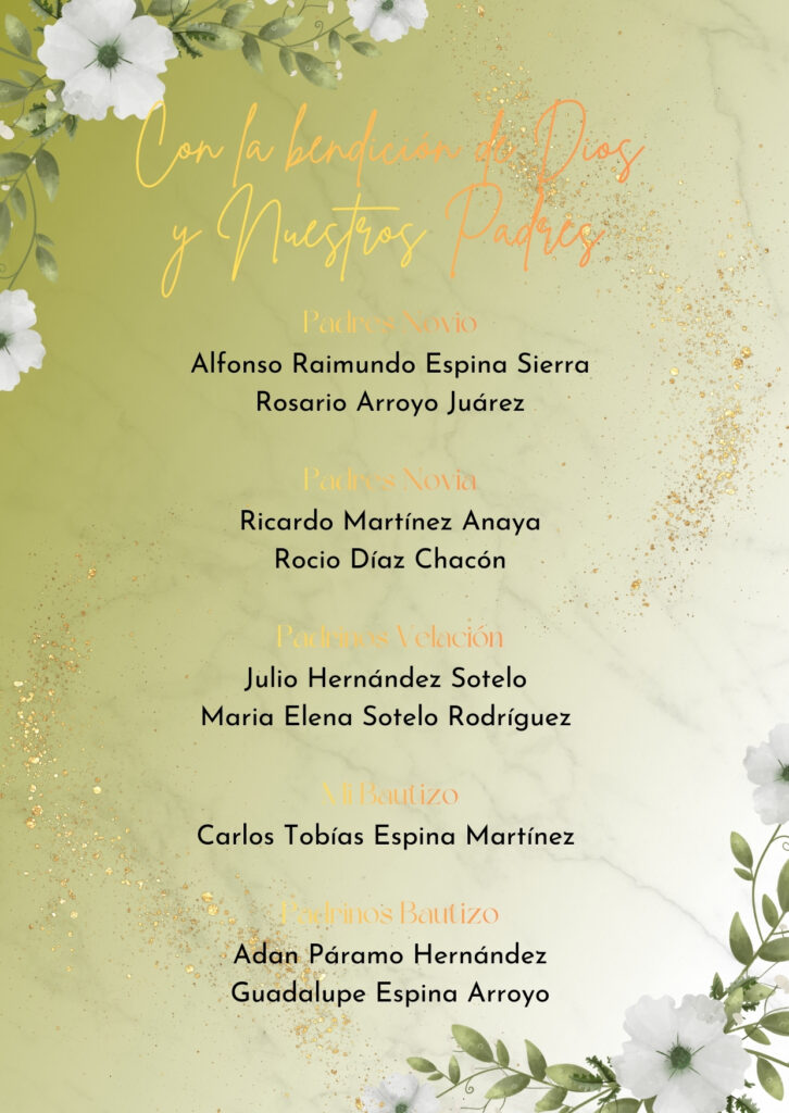 Te esperamos para compartir la alegría de nuestro gran día, sabemos que será mágica, inolvidable, única y sólo estará completa cuando llegues tú…